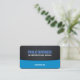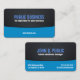 Ein modernes und elegantes Design mit Visitenkarten in Schwarz und Blau. Die Vorderseite zeigt den Firmennamen in blau, den Firmenslogan und die Website-Adresse in weiß. Die Rückseite zeigt den Namen des Arbeitnehmers in blau, sowie den Stellentitel, die Adresse, die Telefonnummer und die E-Mail-Adresse in weiß. Das Design der Visitenkarte enthält 3 Bilder. Das Bild mit dem Titel "Transparentes Logo" ist das globale Logo hinter dem Haupttext. Wenn dieses Logo nicht benötigt wird, kann es durch ein eigenes ersetzt oder entfernt werden.