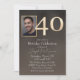 Diese individuelle Einladung enthält ein raffiniertes Männerthema zum 40. Geburtstag des Party. Ein Musterfoto wird auf dem verlassen mit einem Goldrahmen gedruckt, daneben ein großes "40" in einer passenden Goldfolie gedruckt. Sie können die Einladung personalisieren, um Ihr eigenes Foto oder ein anderes Bild einzubinden. Der Hintergrund weist ein Muster mit schwarzem Foliengefälle über einem dunkelbraunen Hintergrund auf. Es ist perfekt zum Geburtstag oder anderen besondere Anlass.