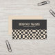Kaum Retro Visitenkarte in fröhlichen, hellen Farben mit einem gewölbten karierten Muster. Wir stellen Ihnen unsere einzigartige Sammlung von individuellen Schmuckkarten vor! Unser kühnes Design bietet einen einfachen Designer, der Ihre Ohrschellen, Ohrringe oder Ohrstöcke entwirft und so eine trendige und lustige Anzeige kreiert, die Ihre Ohrringe besonders auffällig macht. Diese einfachen Ohrringe zeigen Karten für einen fett-modernen Vintagen Look mit einem blau karierten Muster Hintergrund mit einer hübschen Retro Vintagen weißen Typografie und sind die perfekte Kleingeschäftshilfe für Ihre eigene Schmuckmarke. Ideal für Ihre Designer Schmuckmarke, um online zu verkaufen oder für einen kleinen Kunstladen und Geschäftsinhaber oder einfach für die Handwerker, die Liebe haben, ihre eigenen Ohrringe zu machen und sie als Geschenke an Lieben zu geben. Das minimalistische Design ist modern und passt perfekt zu Ihrem Geschenk und Ihrer Marke. Passen Sie Ihre eigenen modernen und eleganten Halsketten Display Visitenkarten. Geeignet für alle Schmuckdesigner und -firmen. Wenn Sie weitere Anpassungen benötigen, schreiben Sie mir bitte eine Nachricht.