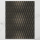 Schwarz-Gold Art Deco Schreibwaren. Das Muster im Bild ist ein Beispiel für ein Art-Deco-Lüftermuster. Dieser Stil, der in den 1920er Jahren sehr beliebt war, zeichnet sich durch wiederholende, fächerähnliche geometrische Formen aus. Das Art Déco-Lüftermuster kann auch als ein nahtlos scallopiertes Muster bezeichnet werden. Das Lüftermuster gilt als Symbol für Chicness, Luxus, Unschuld und Power. Es wird oft in Schwarz-Gold-Farben gesehen, wie das Bild, das Sie bereitgestellt haben, um den Art-Déco-Stil zu verbessern und ein Gefühl von Luxus und Eleganz zu schaffen