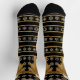 Geben Sie das Geschenk von festlichen Socken in dieser Feiertagssaison. Diese schwarz-goldfarbenen Schneeflocken mit einem großen Imitat Coquette Bogen sind bereit, gedruckte Geschenkmarke für einen Namen auszufüllen. Ich schrieb fröhliche Sockmas. Was würdest du schreiben?