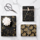 Elegantes schwarz-goldenes Walentinpapier. Dieses Set enthält drei Blätter Papier mit schwarzem Hintergrund und goldenen Herzmustern, für eine Touch der Klasse.
