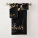 Schwarz und Gold Elegant Blumen Badhandtuch Set