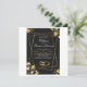 ✨ elegante Black and Gold Wedding ✨ - Eine luxuriöse 💍 Hochzeitseinladung mit einem ausgeklügelten schwarzen Hintergrund 🖤 mit goldblühenden Akzenten 🌸 🌟, geometrischen Rahmen und stilvollen Script-Schriftart ✒️. Das Design umfasst Platz für die Namen 👰 Paares, 📅, 📍 und ✉️, die alle vollständig an den Anzug Ihres besonderen Tages 💕 angepasst werden können. Dieses elegante Hochzeitsjubiläum ist perfekt für ein modernes, glamouröses oder formelles Hochzeitsmotiv 🎉. Es soll Ihre Gäste beeindrucken und den Ton für Ihre Feier 🥂.