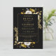 Diese elegante Schwarz-Gold-All-in-One-Blumen-Hochzeitseinladung kann personalisiert werden mit Ihren Informationen in der modernen Typografie und all Ihren besonderen Hochzeitstag Informationen auf der Rückseite, einschließlich Ihrer UAWG, Unterkunft und weitere Details. Entwickelt von Thisisnotme©