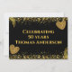 Ein zeitloses Design in Schwarz und Gold für eine besondere 50. Geburtstagseinladung. Grosser, eleganter Schriftart für die Hauptbotschaft an der Vorderseite. Einladung und Details auf der Rückseite im gleichen Schwarz-Gold-Stil. Machen Sie die Feiern wert die vielen Jahre gewartet! Diese vollständig personalisierbaren Einladungen zum Geburtstag sind eine gute Möglichkeit, Ihre Freunde und Familie offiziell zu informieren.
