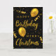 Feierliche Goldballons und Glitzer auf schwarzer Grußkarte, die Geburtstag und Weihnachten zum Ausdruck bringen!