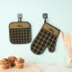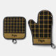 Schwarz und Gold Kariert Ofenhandschuh & Topflappen-Set