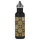 Moderne Edelstahlflasche aus schwarz und gold mit modernem Blumenmuster und Monogramm.