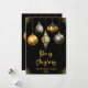 Versenden Sie warme Weihnachtsgrüße mit dieser anspruchsvollen Weihnachtskarte mit fünf eleganten Ornamenten in Schwarz- und Goldtönen. Jedes Ornament zeigt ein einzigartiges Design - Blumen, Schneeflocke, tropfender falscher Glitter, Diamantmuster und Sterne - vor einem reichen schwarzen Hintergrund mit goldenen Funken. Die luxuriöse Farbpalette und das raffinierte Layout machen diese Karte ideal für stilvolle Familien, formelle Grüße oder geschäftliche Weihnachtsnachrichten. Perfekt für diejenigen, die moderne Eleganz mit einer festlichen Note lieben.