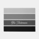 Diese trendige Türmchen mit vier Streifen in verschiedenen ombre Farbtöne von schwarz, kohle und grau, und Ihr Name oder Monogramm in Schrift-Typografie für ein modernes Aussehen.