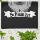 Schwarz-Weiß-Design eines Schnauzer. Das wurde von einer Freundin inspiriert, die ihren niedlichen Hund LIEBE. Ich kann sehen, warum diese Hunde wunderbare ausdrucksvolle Gesichter mit markant bartbespielten Winkeln haben. Unter dem Hundegesicht steht ein schwarz-weißes Banner, das Schnauzer ausliest.