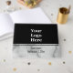Müssen Sie aufzeichnen, wer an Ihren Firmenveranstaltungen teilnimmt? Ein Gästebuch macht die Aufzeichnung einfach und persönlich. Auf der Vorderseite dieses Gästebuches aus schwarzem und weißem Marmor befindet sich oben ein großes Bild auf einem schwarzen Hintergrund. (Bild: Ihr Logo hier). Sie können das Display-Bild durch das entsprechende Logo ersetzen. Unten befinden sich zwei Zeilen schwarzen Anzeigetextes auf dem Marmorstreifen des Imitats für benutzerdefinierten Text, z. B. den Ereignisnamen und das Datum. Alle Texte können bearbeitet oder gelöscht werden.