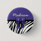 Schwarz und Lila Ribbon Bow Zebra Print Button