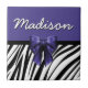 Schwarz und Lila Ribbon Bow Zebra Print Fliese