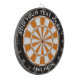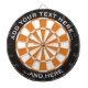 Dartboard mit schwarz und orange Farben und zwei benutzerdefinierten Textbereichen im Kreis.