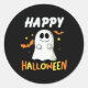 Schwarz und Orange mit Ghost Happy Halloween Runder Aufkleber