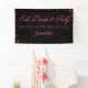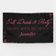 Elegantes Mädchen Geburtstagsbanner mit einem stilvollen schwarzen Hintergrund, der in jede beliebige Farbe verändert werden kann, mit den Worten "essen, trinken und Party" in einem hellrosa Drehbuch und einer einfachen Textvorlage.