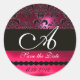 SCHWARZ UND ROT PINK FUCHSIA RUBY DAMASK MONOGRAM, RUNDER AUFKLEBER