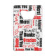 Ihr personalisierter Flaschenöffner zeigt Ihre Dankbarkeit mit dieser rot-schwarzen Wortcollage Danke, geschrieben in mehreren Sprachen und eine Vielzahl von Schriftart über Weiß. Wählen Sie eine andere Hintergrundfarbe als weiß aus.