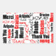 Vielen Dank, dass Sie in mehreren Sprachen geschrieben haben und verschiedene Schriftart-Stile über Weiß haben. Ein rechteckiger Aufkleber, der mit Rot und Schwarz gestaltet ist. Klicken Sie unter Bearbeiten und Hintergrund auf Anpassen!, um eine andere Hintergrundfarbe als weiß auszuwählen.