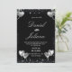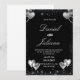 Dieses elegante "Save the Date"-Kartendesign für eine Hochzeit auf Zazzle besticht durch eine glitzernde schwarze Kulisse, die einen Nachthimmel symbolisiert, mit strahlenden Sternen und schwebenden Silberherzen, die eine romantische und feierliche Touch hinzufügen. Die Namen "Daniel" und "Juliana" sind in einem stilvollen, weißen, kursiven Schriftart geschrieben, wodurch ein Fokus entsteht, der sich vor dem dunklen Hintergrund abhebt und die Gewerkschaft des Paares darstellt. Zwischen den Namen zentriert sind zwei silberne Ringe verflochten, die die Bindung des Paares und das Heiratsversprechen darstellen. Die Einzelheiten der Hochzeit sind in einem klaren und prägnanten, weißen Schriftart dargestellt, sodass die Informationen vor dem dunklen Hintergrund leicht lesbar sind. Das Design ist modern und zeitlos zugleich, um einen besondere Anlass zu verkünden, den Freunde und Familie gewollt haben