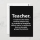 Schwarz-weiß Postkarte zur Lehrererkenntlichkeit, Originaldesign von Nisha Prabhu. Zeigen Sie Ihre herzliche Dankbarkeit mit unserer eleganten Schwarz-Weiß-Lehrer-Würdigungskarte! Diese schön gestaltete Postkarte enthält ein inspirierendes Zitat und ein zeitloses Schwarz-Weiß-Thema, was sie zur perfekten Möglichkeit macht, Ihre Wertschätzung für die unglaublichen Pädagogen in Ihrem Leben auszudrücken. Ob zur Lehrererkenntlichkeitswoche, einem Dankeschön zum Jahresende oder einfach als zufälliger Akt der Freundlichkeit - diese Postkarte ist eine entzückende Möglichkeit, Ihre Bewunderung auszudrücken.