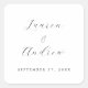 Schön, elegant und einfach, schwarz minimalistisch quadratisch Aufkleber. Vollständig anpassbar mit Ihren Namen, Datum und Farben, um Ihre Hochzeit Thema.