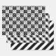 DREI VERSCHIEDENE, ABER SEHR SCHWARZ, SCHWARZ & WEISS THEMED WRAPPING PAPIERE AUS MONKEY BUSINESS GRAPHIC DESIGN, 2024. EINES IST EIN SCHACHBRETT MIT NIEDLICHEN HUNDEN IN JEDEM PLATZ. DAS ZWEITE IST EIN SCHÖNES BAUHAUS IM STIL GINGHAM DRUCKEN. DAS DRITTE IST EIN SCHWARZER UND WEISSER STIL. DER PERFEKTE WEG, UM ALLE IHRE GIFTS KOORDINIEREN ZU KÖNNEN!