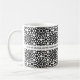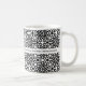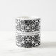 Äußeres geometrisches Design in Schwarz/Weiß. Klassisch und stilvoll geht nie aus der Mode. Das Muster wird in der Mitte durch eine weiße Linie geteilt, um die Tasse zu personalisieren, fügen Sie den Text Ihrer Wahl hinzu.