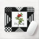 Ein Mousepad in Schwarzweiß mit geometrischen Mustern und einer schicken rote Rose. Personalisieren Sie dieses grafische Zickzack und polka dots Design, indem Sie Ihren Namen hinzufügen.