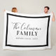 Schick moderne Fleece im Bauernstil werfen Decken personalisiert mit Ihrem Familiennamen Monogramm und etablierten Datum oder anderen benutzerdefinierten Text. Das Design zeichnet sich durch einen schwarzen Streifen mit stilvoller Mischtypografie aus. Verwenden Sie die Designwerkzeuge, um Schriftart und Farben auszuwählen, die Ihnen gefallen, oder um eigene Fotos hinzuzufügen.