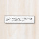 Machen Sie Ihr Unternehmen beruflicher mit einem modernen schwarz-weiß hängenden Namensschild. Diese hängende Namensplatte weist Monogramm im modernen, schwarzen Skript-Schriftart-Stil auf, mit Namen und Titel in schwarz beruflicher Serif-Schriftart-Stil auf weißem Hintergrund. Ideal für einen echten Anwesen-Agent, Berater, Buchhalter und viele andere Berufe.