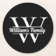 Schwarz und Weiß | Monogramm für einfache Familien Runder Pappuntersetzer