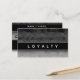 Inspirier den Kunden, immer wieder mit diesen modischen Loyalitätskarten in Schwarz-Weiß-Boho-Chic-Mustern zurückzukommen. Ideal für Zen, Meditationskurse, Lebenstrainer, Yogalehrer, Therapeuten, Salons und Wellness-Center. Dieses unvergessliche Design zeichnet sich durch ein gewagtes Design aus, das Kunden dazu anregt, treue Kunden zu werden. Die Rückseite ist leicht mit Ihrer Nachricht, Ihrem Geschäftsnamen und Ihren Kontaktinformationen personalisiert. Template enthält aquamarine Loyalitätsetikettierer, die einfach zu klopfen sind.