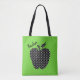 Hübsche Lehrertote mit einem schwarz-weißen Polka Dotapfel auf grünem Hintergrund. Schwarzer benutzerdefinierter Text liest Lehrer und kann personalisiert sein, zu lesen, was Sie gewollt haben.