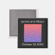 Breite schwarze Grenze, mit einem Vorlagenhalter für das Foto der Braut und des Bräutigams, mit einem Ort für ihre Namen und das Hochzeitstag, in Weiß, auf einem Magneten. Passen Sie Ihre Hochzeitsdetails auf einer einfach zu bedienenden Vorlage an. Wenn du Hilfe brauchst, kontaktiere mich einfach.