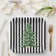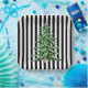Schwarz und Weiß Streifen Aquarellwein Weihnachtsb Pappteller