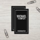 Fett Schwarz-Weiß-Visitenkarte mit Informationen in weißem, fett formatiertem Sans Serif-Schriftart mit weißem Rand auf schwarzem Hintergrund. Ideal für Designer, Fotografen, Berater und viele andere Berufe.