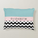 Schwarz und Weiß Zigzag, Zickzack, Blau, Ihr Name Dekokissen