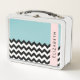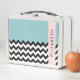 Schwarz und Weiß Zigzag, Zickzack, Blau, Ihr Name Metall Brotdose