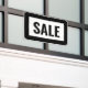 Feines schwarz-weißes Verkaufszeichen. Einfach schwarz auf weiß mit einem dicken, fett formatierten Rahmen und feinem Text.
