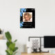Personalisieren und fügen Sie ein Foto, einen Namen und Daten hinzu. Ein klassischer schwarzer Hintergrund mit Imitaten silberner Glitzer Glitzer Staub, dekoriert mit blauen vergisst-me-nicht-Blume.