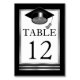 Einfach, elegant und modern in Schwarz und Weiß mit silberfarbenem (bedrucktem) Rahmen und Schwarz-Text, Graduierungspapier Tischnummer-Kartendesign. Originelles Design von Holiday Hearts Designs (alle Rechte vorbehalten).