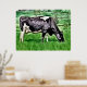 Eine zweifarbige Kuh, die das tut, was Kühe tun (d.h. Gras den ganzen Tag essen).