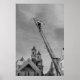 Dieses hübsche Poster zeigt einen Mann hoch über einer Winterstadt, auf einer Leiter, die sich zum Himmel hin erstreckt und daran arbeitet, das Straßenlicht aufrechtzuerhalten, das drahtlos über der Straße schweben lässt. In der Ferne liegen die beiden Kirchensteile sowie die Gebäude und Zuhause von 1968 in Europa. Ein perfektes Geschenk für den Vintagen Liebhaber der Fotografie in Ihrem Leben.