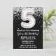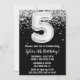 Schwarz-Weiß 5. Geburtstagsfeier Einladung 5 Geburtstagsfeier Einladung mit Glitzer und modernem Drehbuch und lustigen Ballons.