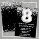Schwarz-Weiß 8. Geburtstagsfeier Einladung zum 8. Geburtstag mit Glitzer, modernem Drehbuch und lustigen Ballons.