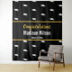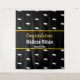 Diese schwarze Foto-Kulisse hat ein Muster von weißen Kaps im Hintergrund. In der Mitte gibt es Display-Text können Sie personalisieren mit einer benutzerdefinierten Nachricht, den Namen des Absolventen. und die Jahresklasse. Das Imitat Gold Skript ist ein künstlerisches Rendering (es ist nicht Folie).