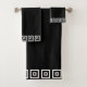 Elegante schwarz-weiße Quadrate auf schwarzem Handtuchhalter Set Stilvolle moderne Schwarz-Weiß Handtücher.
